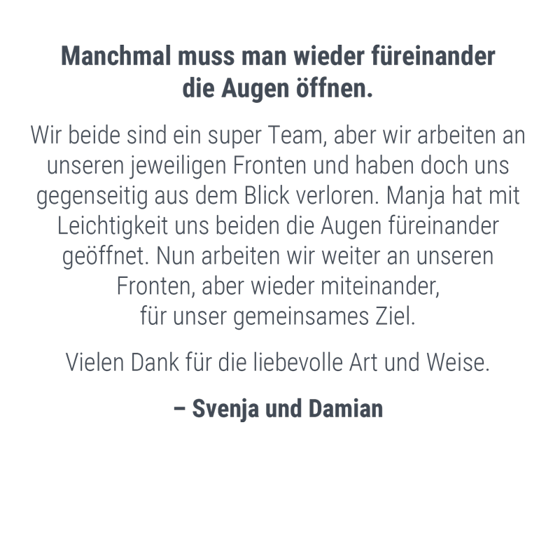 Egal ob privat, beruflich oder in Ihrer Beziehung, gemeinsam richten wir den Blick auf Ihre Wünsche, aktivieren Ihre Ressourcen und finden Ihren Weg ans Ziel.